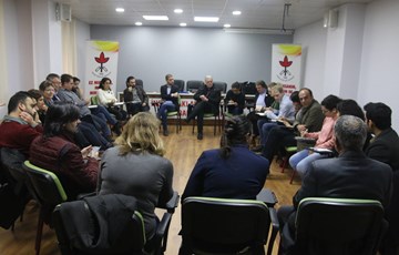 DİYARBAKIR- Türkiye’de bir dizi temaslarda bulunun Uluslararası Barış Heyeti, kentteki hak savunucusu sivil toplum kuruluşları ve meslek odalarıyla bir araya geldi.