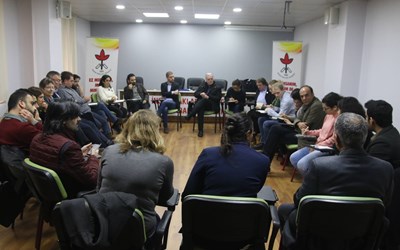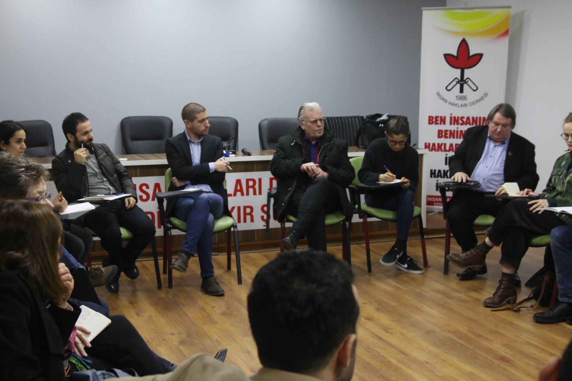 İmralı Hapishanesinde süren tecrit uygulamalarını protesto etmek amacıyla, başta DTK Eşbaşkanı ve HDP Hakkari Milletvekili Leyla Güven olmak üzere hapishanelerde 300’ü aşkın siyasi mahpusun başlatmış olduğu açlık grevleri nedeniyle temaslarda bulunmak üzere Türkiye’ye gelen Uluslararası Barış heyeti, İHD Diyarbakır Şube binasında hak savunucusu sivil toplum kuruluşları ve meslek odalarıyla bir araya gelerek bir toplantı gerçekleştirdi. Tecrit, açlık grevleri ve bölgedeki hak ihlalleri üzerine bilgi alışverişinde bulunulduğu öğrenilen toplantı, basına kapalı gerçekleştirildi.