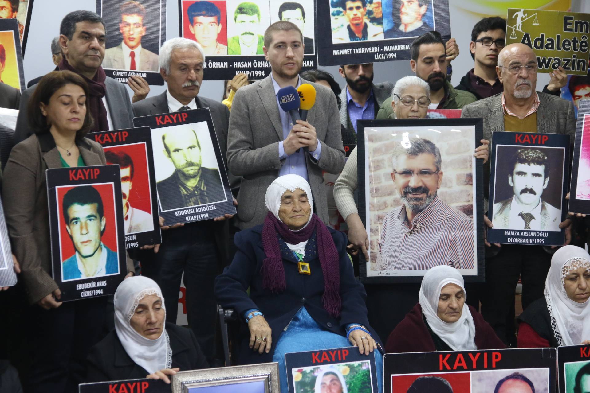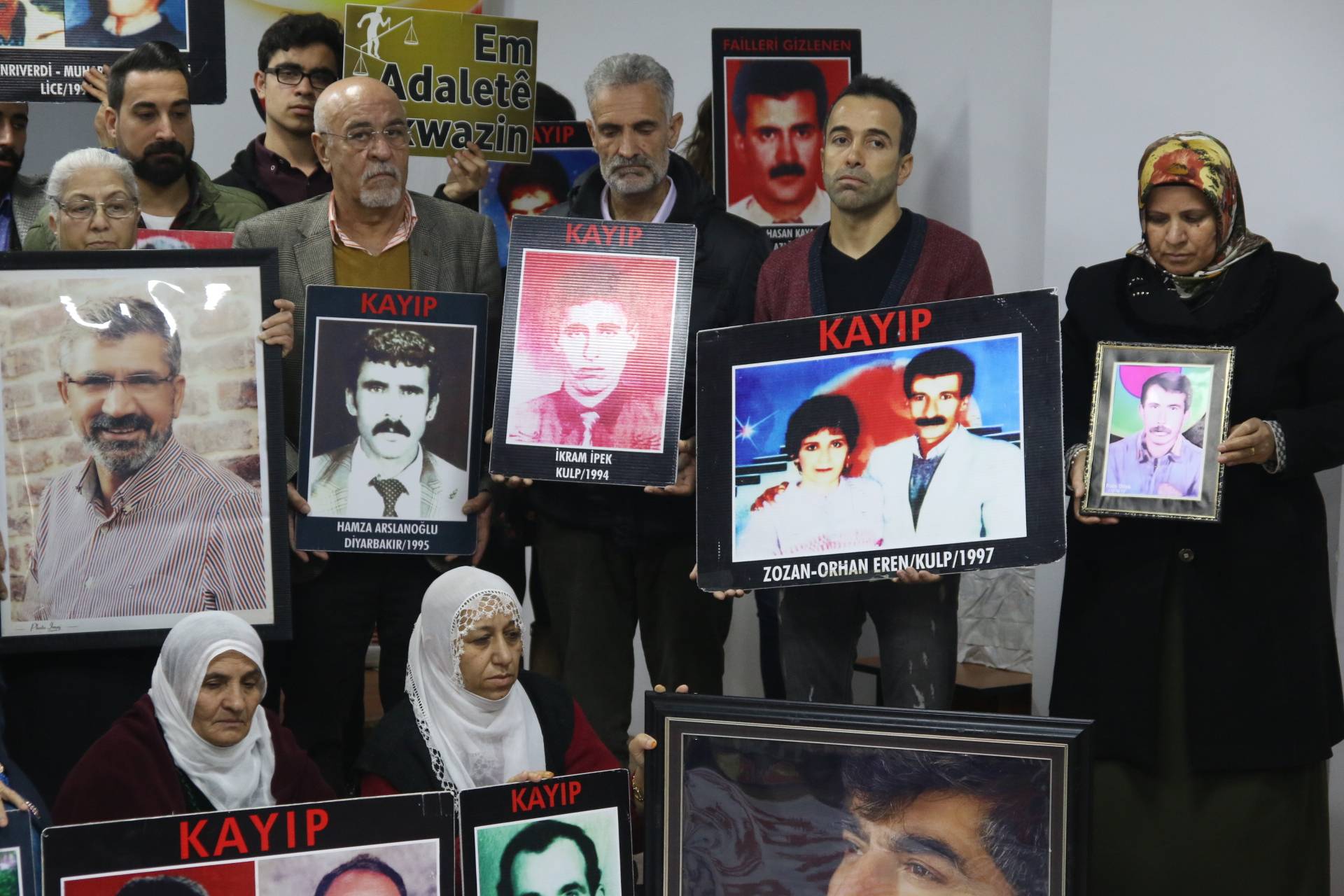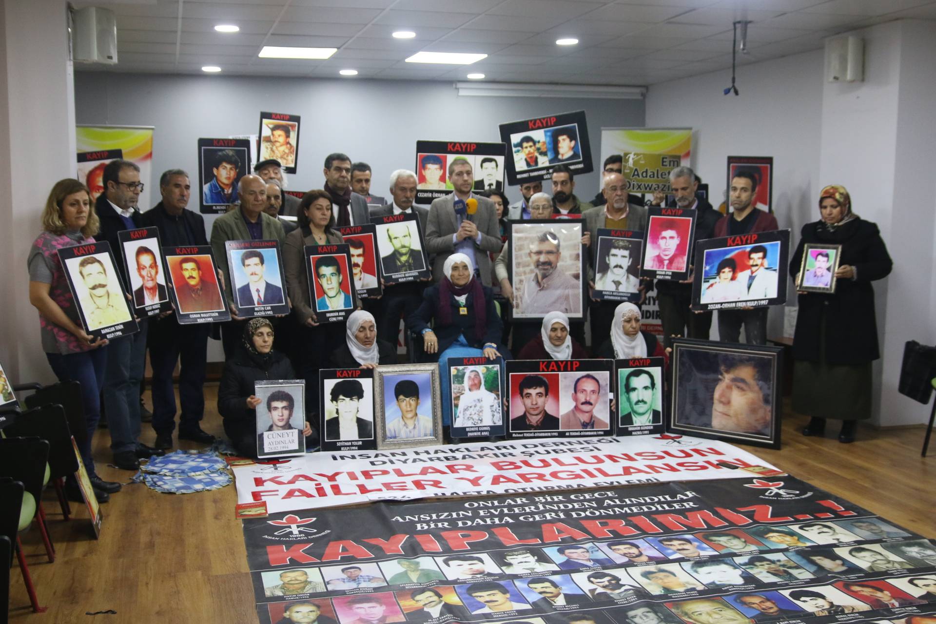 İnsan Hakları Derneği (İHD) Diyarbakır Şubesi ve kayıp yakınları tarafından “Kayıplar bulunsun, failler yargılansın” sloganıyla her hafta düzenlenen oturma eylemlerinin 524’üncüsü, Valiliğin kayıp eylemlerini 25 haftadır yasaklayan keyfi ve hukuk dışı kararı nedeniyle İHD Diyarbakır Şube binasında gerçekleştirildi. Eylemden önce şube binasının bulunduğu sokağın polis tarafından abluka altına alındığı görüldü. Şube binasında gerçekleşen ve kayıpların fotoğraflarının taşındığı eyleme İHD Şube yönetici ve üyeleri, HDP Diyarbakır Büyükşehir Belediyesi Eş Başkan Adayları Adnan Selçuk Mızraklı ve Hülya Alökmen Uyanık, CHP Diyarbakır İl Başkanı Mehmet Sayın, TMMOB İç Mimarlar Odası Diyarbakır İl Temsilcisi Hasan Pekdoğan, kayıp yakınları ve insan hakları aktivistleri katıldı. Eylemde, 17 Şubat 1992 tarihinde Mardin’in Nusaybin ilçesine bağlı Kuşkaya köyünde koruculuk dayatmalarına karşı gerçekleştirilen toplumsal gösteri sırasında, askerlerce açılan ateş sonucu yaşamını yitiren Bedriye Gümüş ve 5 köylünün faillerinin bulunarak cezalandırılması talep edildi.