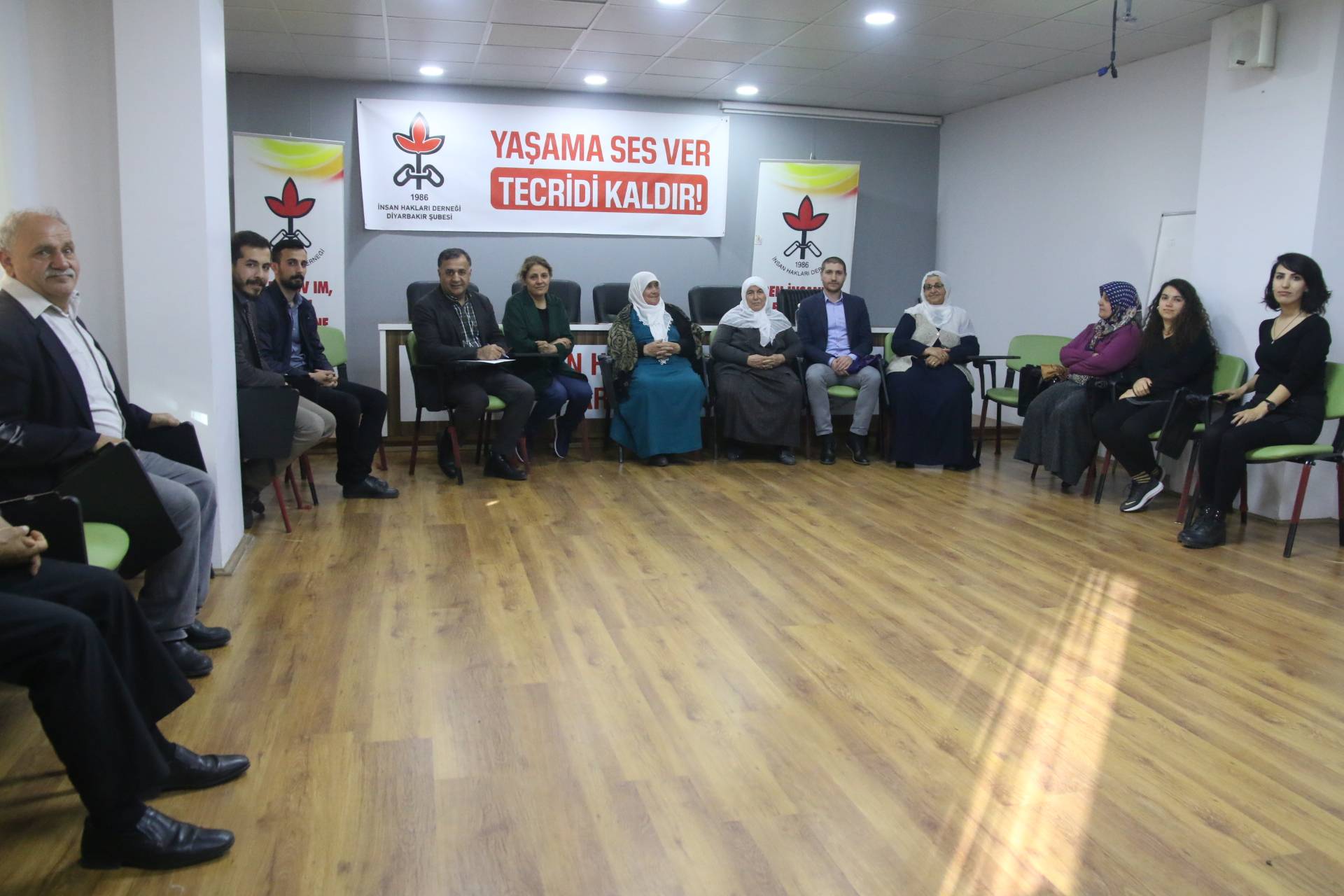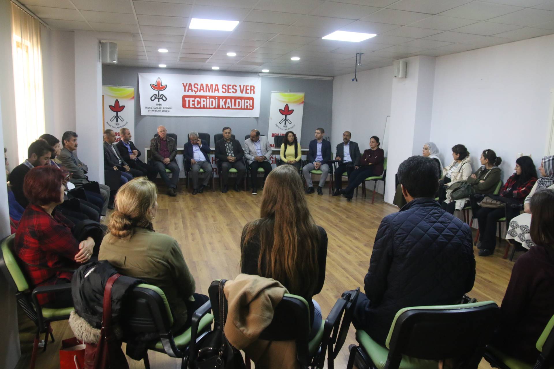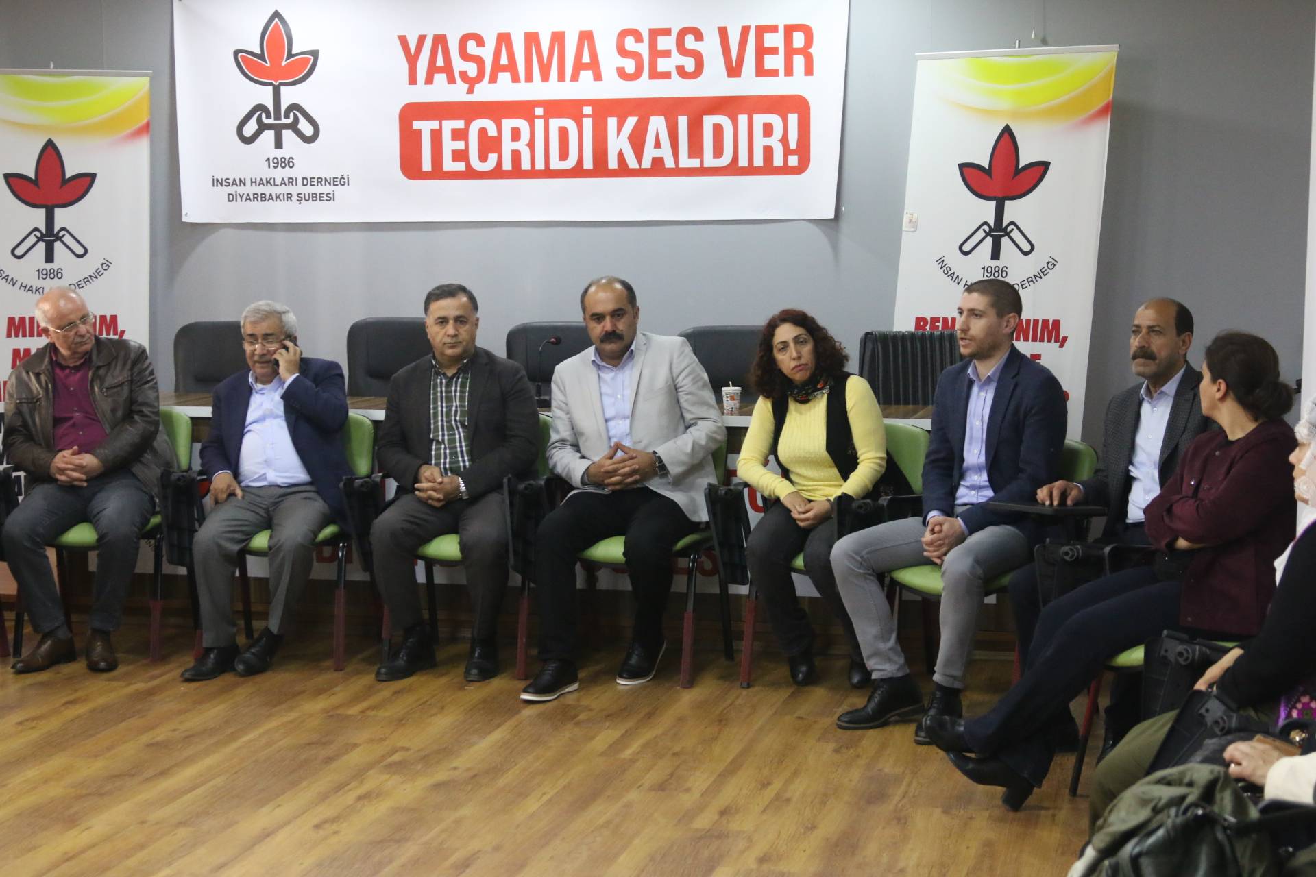 İHD Diyarbakır Şubesi'nde "Yaşama ses ver" eylemine Diyarbakır Büyükşehir Belediye Eşbaşkanlığına seçilen Selçuk Mızraklı, Diyarbakır Barosu avukatları, tutuklu ve hükümlü yakınları destek verdi. Açıklama yapan İHD Diyarbakır Şube Başkanı Abdullah Zeytun, Türkiye'deki cezaevlerinde binlerce tutuklu ve hükümlünün tecridin kaldırılması talebiyle açlık grevinde olduğunu hatırlatarak, tecridin kaldırılması için de bazı tutukluların yaşamlarına son verdiğini belirtti. Zeytun, “Öncelikle yaşamına son verenlerin ailelerine bu kişilerin ailelerine ve sevenlerine başsağlığı dileklerimizi paylaşmak isteriz. Bir kez daha hatırlatmak isteriz ki yaşam kutsaldır. İnsan hakları savunucuları olarak her koşulda yaşama hakkını savunuruz. Hepimizin karşı çıktığı tecrit ve izolasyon uygulamalarının son bulması için devam eden açlık grevlerinde dile getirilen talepler insan hakları hareketi tarafından anlaşılmış ve insan hakları hukukuna uygun olarak tecridin kaldırılması için gereken her türlü çalışma ve girişim yapılmaktadır. Mahpusların sesi duyulmuştur. Demokratik kamuoyunun daha fazla duyarlı olması için gereken çalışmalar da yapılmaktadır. Dolayısıyla mahpusların tecridin sona erdirilmesi ile ilgili taleplerinin karşılık bulacağı bir noktaya elbette gelineceğini belirtmek isteriz” diye konuştu.