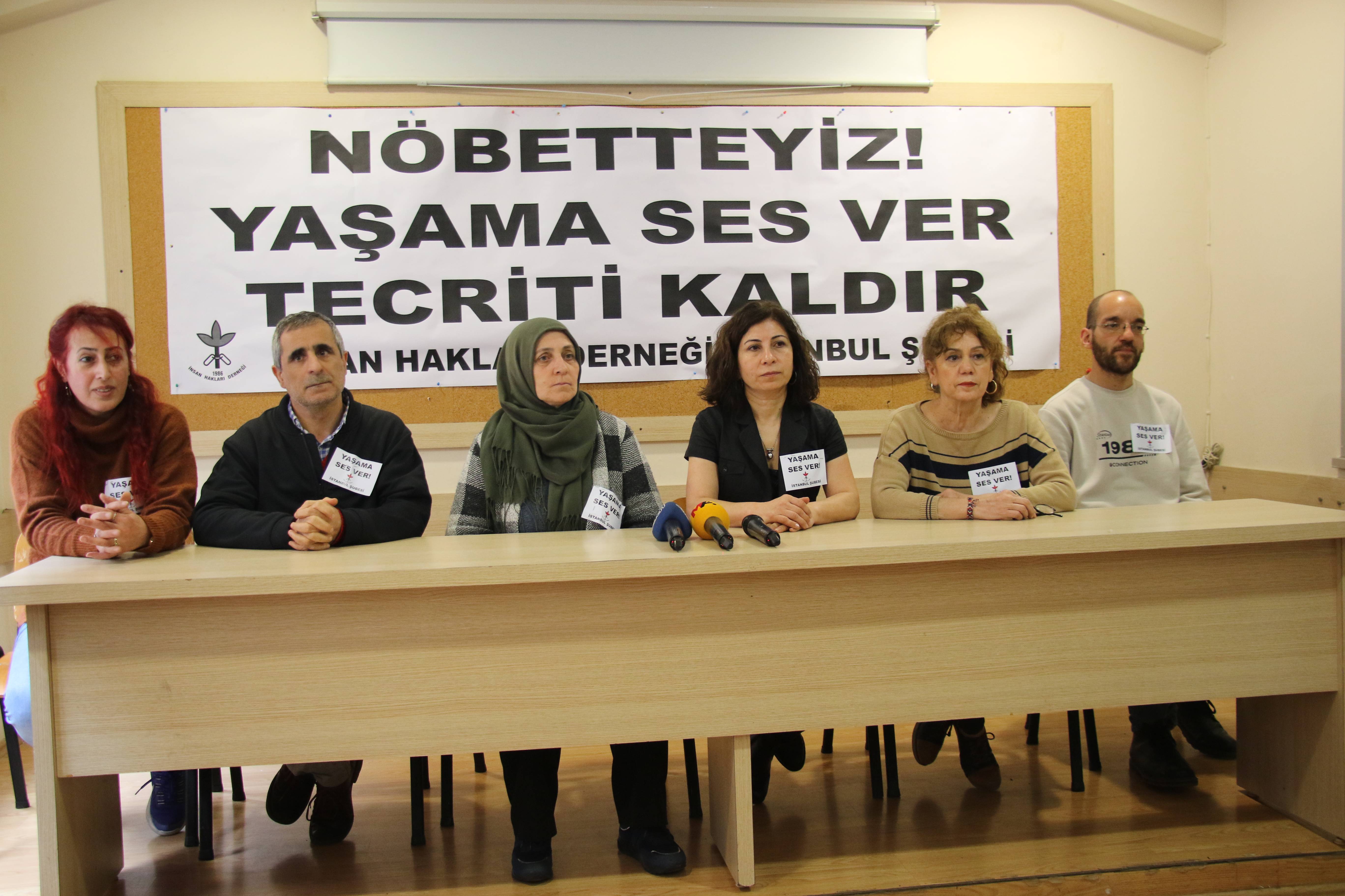 İnsan Hakları Derneği (İHD) üyeleri, PKK Lideri Abdullah Öcalan üzerindeki tecridin kaldırılması talebiyle başlayan açlık grevlerine dikkat çekmek amacıyla “Yaşama ses ver” sloganıyla bir günlük nöbet eylemi başlattı. İHD İstanbul Şube binasında akşam 21.00’e kadar devam edecek olan eylemde “Nöbetteyiz yaşama ses ver, tecridi kaldır” pankartı asıldı. Tutuklu yakınlarının da katıldığı nöbet eylemine ilişkin açıklama yapıldı.