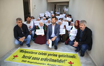 İHD Mersin Şubesi’ndeki eyleme de insan hakları savunucularının yanı sıra tutukluların yakınları katıldı.
