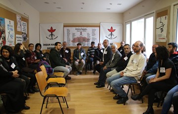 İHD Antalya Şubesi binalarında "Yaşama ses ver" sloganıyla 1 gün süreli nöbet eylemi gerçekleştirirken, etkinliğe tutuklu yakınları ile çok sayıda kişi katıldı.