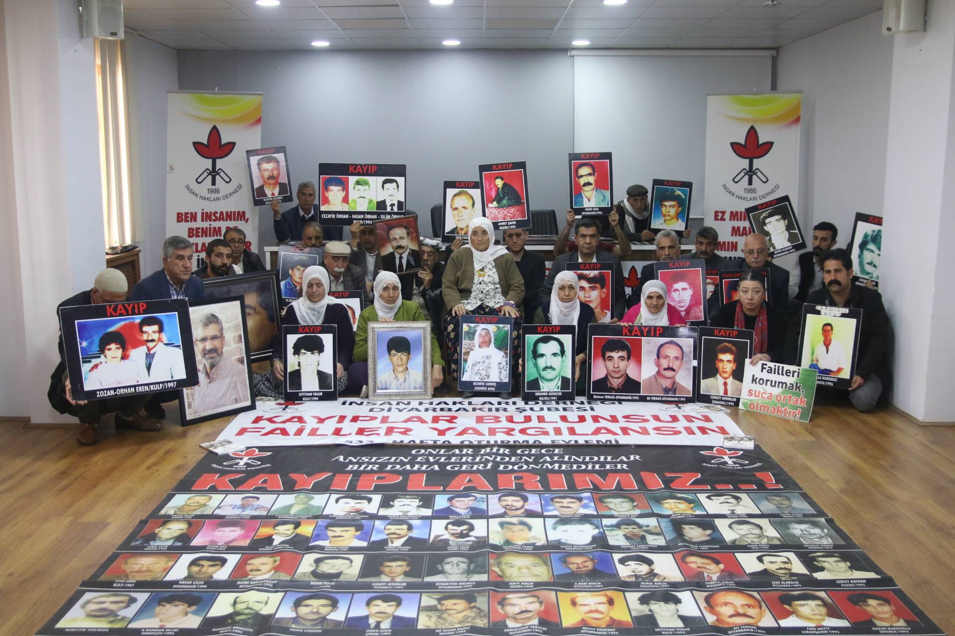 İnsan Hakları Derneği (İHD) Diyarbakır Şubesi ve kayıp yakınları tarafından “Kayıplar bulunsun, failler yargılansın” sloganıyla her hafta düzenlenen oturma eylemlerinin 533’üncüsü, Valiliğin kayıp eylemlerini 34 haftadır yasaklayan keyfi ve hukuk dışı kararı nedeniyle İHD Diyarbakır Şube binasında gerçekleştirildi. Şube binasında gerçekleşen ve kayıpların fotoğraflarının taşındığı eyleme İHD Bölge Temsilcisi Abdusselam İnceören, İHD Diyarbakır Şube yönetici ve üyeleri, CHP Diyarbakır İl Başkanı Mehmet Sayın, kayıp yakınları ve insan hakları aktivistleri katıldı. Eylemde, 1989 yılında Şırnak’ın Cizre ilçesinde gözaltına alındıktan sonra öldürülen ve cenazesi ailesine teslim edilmeyen Mehmet Ertürk’ün akıbeti soruldu.