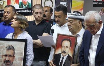DİYARBAKIR - İHD Diyarbakır Şubesi ve Kayıp yakınları tarafından ‘Kayıplar Bulunsun Failler yargılansın’ sloganıyla gerçekleştirilen oturma eylemlerinin 551’incisi gerçekleştirildi. 1993 yılında Diyarbakır'ın Hazro ilçesinde gözaltında kaybedilen Ahmet Şahin'in akıbeti sorulurken, eylemde bir konuşmada bulunan İHD Diyarbakır Şube Başkanı Abdullah Zeytun "Adalet mücadelesinin bir bütün olduğunu, hukuksuzluğun her kesime yansıdığını ve bunun ancak dayanışmayla mücadeleyle sonlandırılacağını belirtiyoruz” diye konuştu.