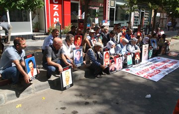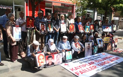 DİYARBAKIR - İHD Diyarbakır Şubesi ve Kayıp yakınları tarafından ‘Kayıplar Bulunsun Failler yargılansın’ sloganıyla gerçekleştirilen oturma eylemlerinin 555’incisi gerçekleştirildi. Eylemde, 2009 yılında Diyarbakır’ın Lice ilçesinde koyun otlattığı sırada havan topu mermisiyle katledilen Ceylan Önkol ile 1994 yılında Diyarbakır’ın Hani ilçesinde askerler tarafından gözaltına alındıktan sonra katledilen Mehmet Yanen ve Hasan Kanat adlı kuzenlerin failleri soruldu.