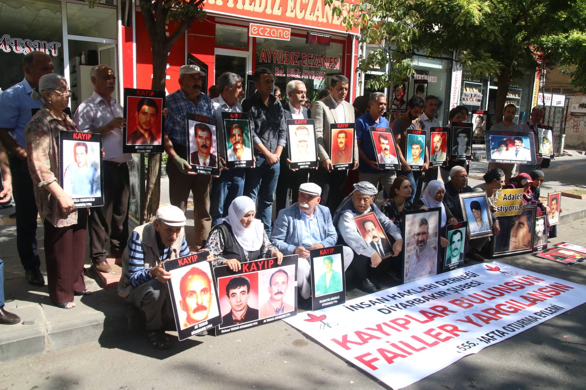 İnsan Hakları Derneği (İHD) Diyarbakır Şubesi ve kayıp yakınları tarafından “Kayıplar bulunsun, failler yargılansın” sloganıyla her hafta düzenlenen oturma eylemlerinin 555’incisi, Valiliğin kayıp eylemlerini 56 haftadır yasaklayan keyfi ve hukuk dışı kararı nedeniyle İHD Diyarbakır Şube binasının önünde gerçekleştirildi. Kayıpların fotoğraflarının taşındığı eyleme İHD Bölge Temsilcisi Abdusselam İnceören, Diyarbakır şube yönetici ve üyeleri, İçişleri Bakanlığı tarafından görevden alınan ve yerine kayyım atanan Diyarbakır Büyükşehir Belediyesi Eşbaşkanı Adnan Selçuk Mızraklı, Bismil Belediyesi Eşbaşkanın Orhan Ayaz, kayıp yakınları ve insan hakları aktivistleri katıldı. Eylemde, 2009 yılında Diyarbakır’ın Lice ilçesinde koyun otlattığı sırada havan topu mermisiyle katledilen Ceylan Önkol ile 1994 yılında Diyarbakır’ın Hani ilçesinde askerler tarafından gözaltına alındıktan sonra katledilen Mehmet Yanen ve Hasan Kanat adlı kuzenlerin failleri soruldu.