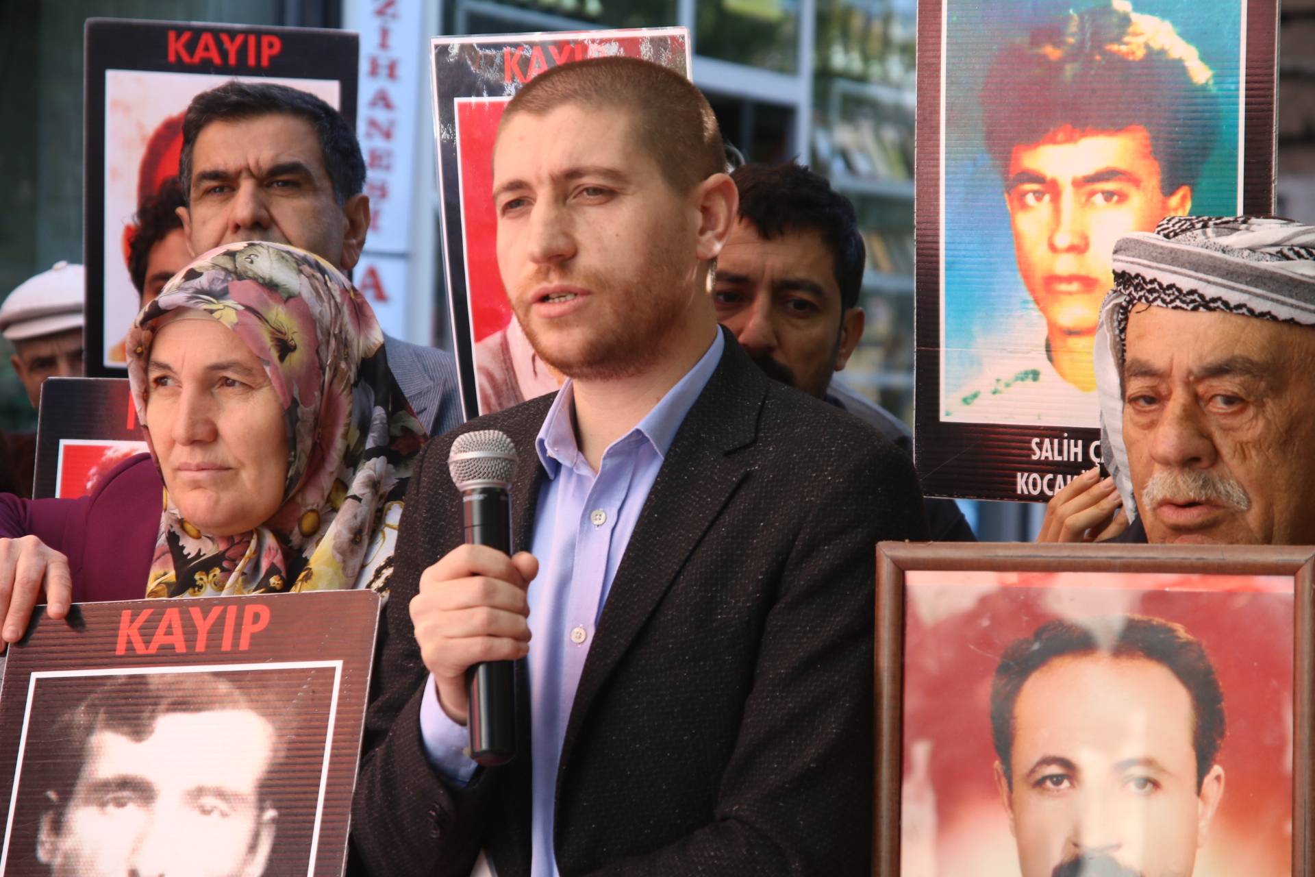 Eylemde konuşan İHD Diyarbakır Şube Başkanı Abdullah Zeytun, “Kayıplar Bulunsun Failler Yargılansın” sloganıyla gerçekleştirdikleri oturma eylemlerinin 560’ıncı haftasını ulaştığını hatırlatarak “Türkiye’de kayıp meselesi ve benzeri insanlığa karşı işlenen bütün suçlar, tümüyle cezasız bırakılmış ve adalet gerçekleşmemiştir. Tüm bu meseleler adalete meselesidir ve bununla bağlantılı Kürt meselesidir. Kürtlerin temel hak ve özgürlüklerinin korunması, hak taleplerinin yerine getirilmemesinden kaynaklı, 90’lı yıllarda devletin bu sorunu görmezden gelmesiyle ve tüm kurumlarıyla su soruna şiddet temelli bir çözüm bulmak amacıyla bu suçları sistematik bir şekilde işlemiştir” diye konuştu. Düşünceleri nedeniyle her kesimden insanın yargı baskısına maruz kaldığını söyleyen Zeytun, Türkiye’de hemen her hafta gerçekleşen hukuksuzlara tanık olduklarını belirtti.