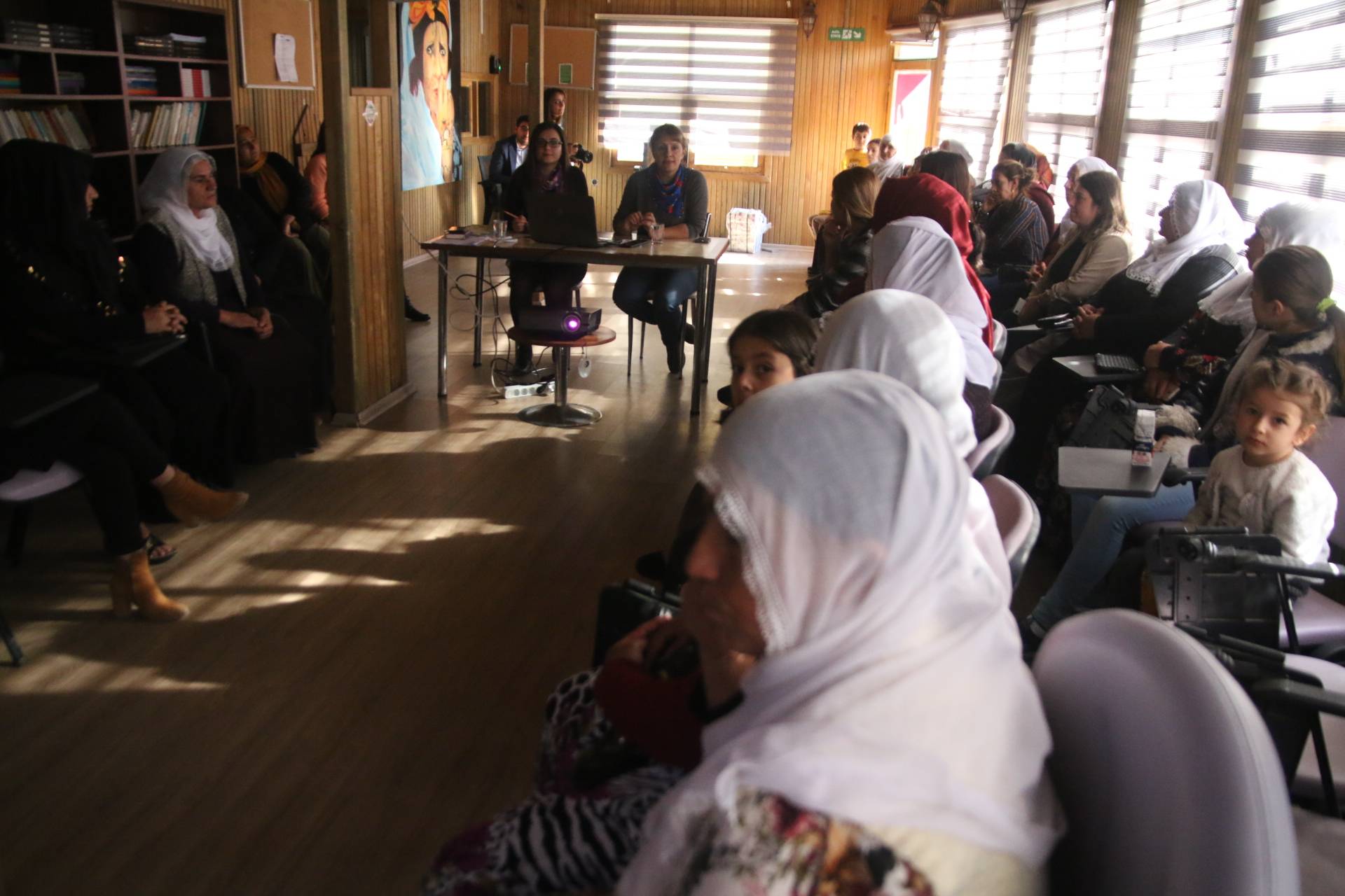 İnsan Hakları Derneği (İHD) Diyarbakır Şubesi Kadın Komisyonu, Çınar Belediyesi bünyesinde faaliyet gösteren Jînwar Kadın Merkezinde kadına yönelik şiddet ve hak arama yöntemleri üzerine bir seminer düzenlendi. İHD Diyarbakır Şube Sekreteri ve Kadın Komisyonu Üyesi Yüksel Aslan Acer ile Şube Yönetim Kurulu ve Kadın Komisyonu Üyesi Av Gurbet Yavuz tarafından sunumların gerçekleştiği seminer, Çınarlı kadınlar tarafından ilgiyle karşılandı.
