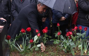Aydın’ın mezarına gül bırakılması ardından, grup mezarlıktan ayrıldı.
