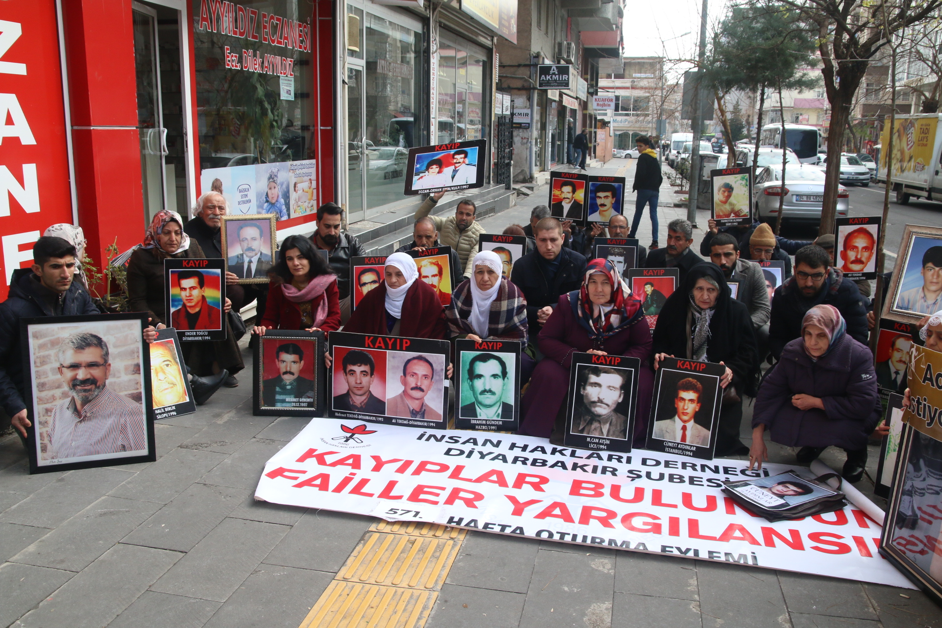 İnsan Hakları Derneği (İHD) Diyarbakır Şubesi ve kayıp yakınları tarafından “Kayıplar bulunsun, failler yargılansın” sloganıyla her hafta düzenlenen oturma eylemlerinin 571’incisi, Valiliğin kayıp eylemlerini 72 haftadır yasaklayan keyfi ve hukuk dışı kararı nedeniyle İHD Diyarbakır Şube binası önünde gerçekleştirildi. Şube binası önünde gerçekleşen eyleme İHD Diyarbakır Şube Başkanı Abdullah Zeytun ile Şube yönetici ve üyeleri, kayıp yakınları ve insan hakları aktivistleri katıldı. Eylemde, 22 Şubat 1994 tarihinde Hakkari’nin Yüksekova ilçesinde kaçırıldıktan 4 gün sonra dere kenarında işkence edilmiş cenazesi bulunan Mehmet Zeki Yılmaz’ın faillerinin bulunarak yargılanması ve cezalandırılması talep edildi.