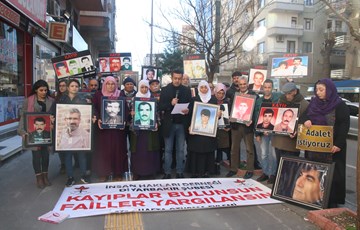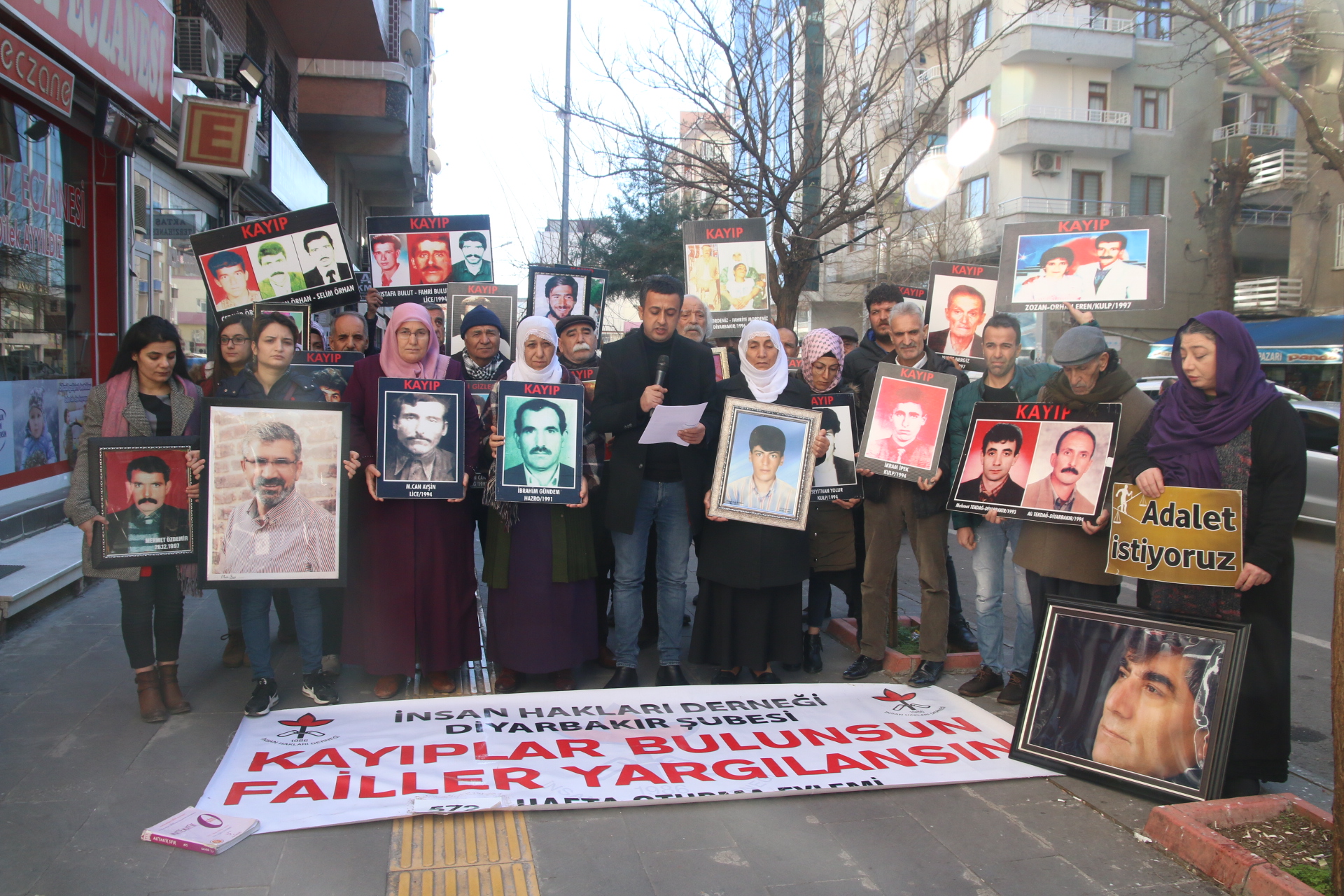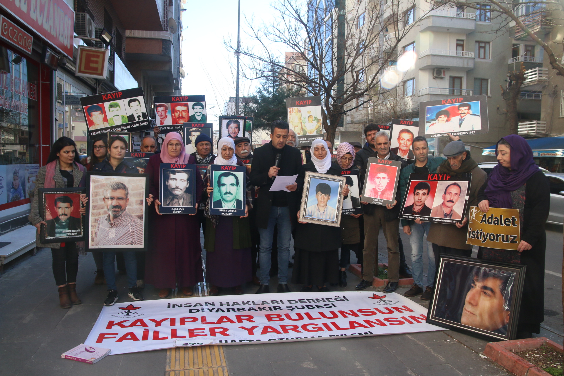 İnsan Hakları Derneği (İHD) Diyarbakır Şubesi ve kayıp yakınları tarafından “Kayıplar bulunsun, failler yargılansın” sloganıyla her hafta düzenlenen oturma eylemlerinin 572’ncisi, Valiliğin kayıp eylemlerini 73 haftadır yasaklayan keyfi ve hukuk dışı kararı nedeniyle İHD Diyarbakır Şube binası önünde gerçekleştirildi. Bina önünde kaldırımda yapılmak istenen eylemin, vatandaş geçişini engellendiği gerekçesiyle polis tarafından caddeye taşınmak istendiği, ancak bu duruma itiraz eden İHD’li yöneticilerin yaptığı görüşmeler sonrasında eylemin kaldırımda gerçekleştiği görüldü. Şube binası önünde gerçekleşen eyleme İHD Doğu ve Güneydoğu Anadolu Bölge Temsilcisi Abdusselam İnceören, İHD Diyarbakır Şube yönetici ve üyeleri, kayıp yakınları ve insan hakları aktivistleri katıldı. Eylemde, 1993 yılında Bingöl’den Diyarbakır’a tedavi amacıyla giden ve bir daha kendisinden haber alınmayan Halim Halıcıoğlu’nun akıbeti soruldu.