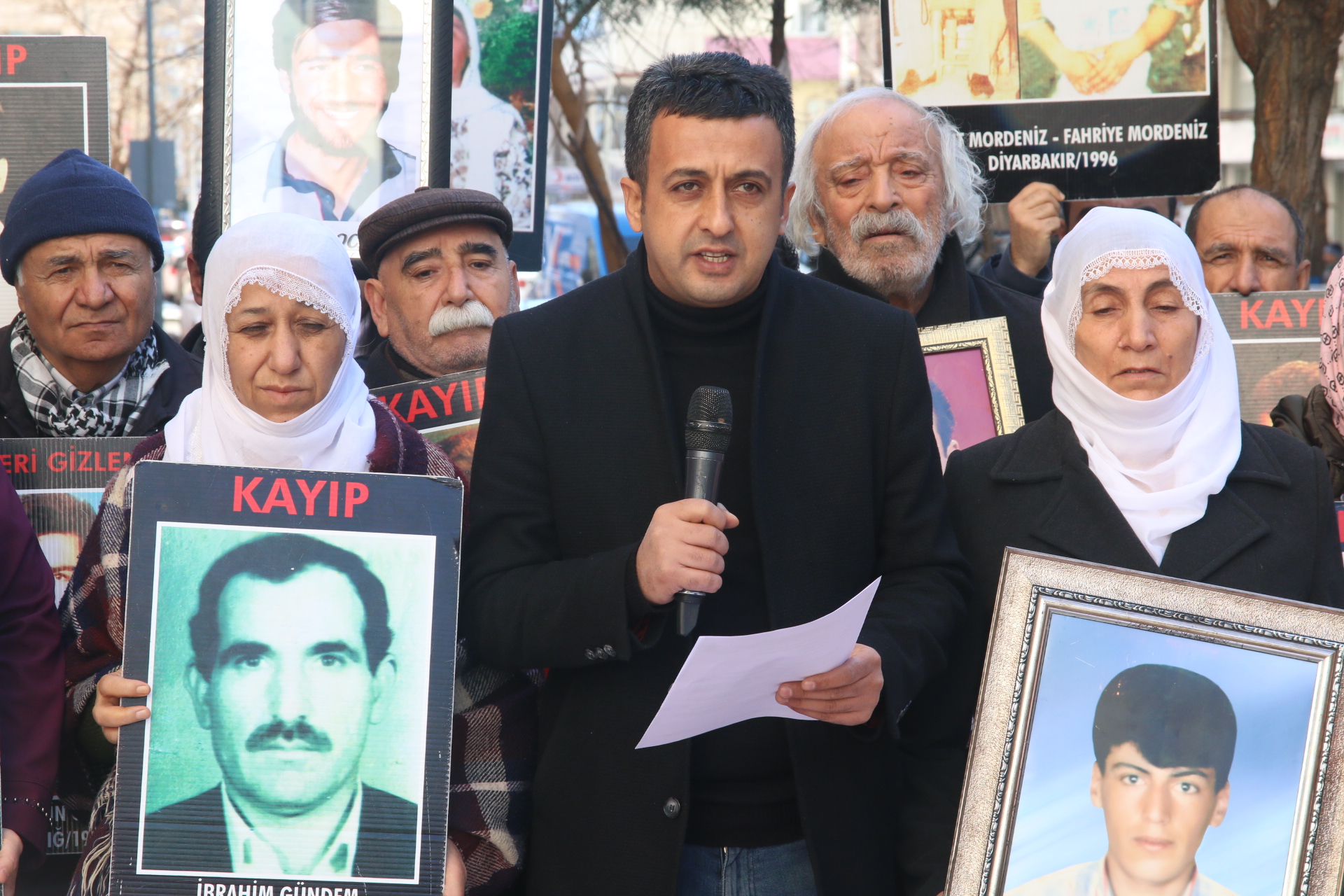 DİYARBAKIR - İHD Diyarbakır Şubesi ve Kayıp yakınları tarafından ‘Kayıplar Bulunsun Failler yargılansın’ sloganıyla gerçekleştirilen oturma eylemlerinin 572’ncisi gerçekleştirildi. Eylemde, 1993 yılında Bingöl’den Diyarbakır’a tedavi amacıyla giden ve bir daha kendisinden haber alınmayan Halim Halıcıoğlu’nun akıbeti soruldu.