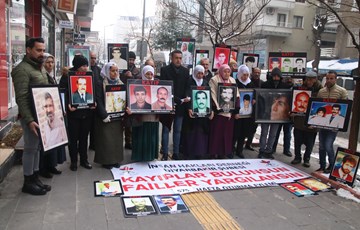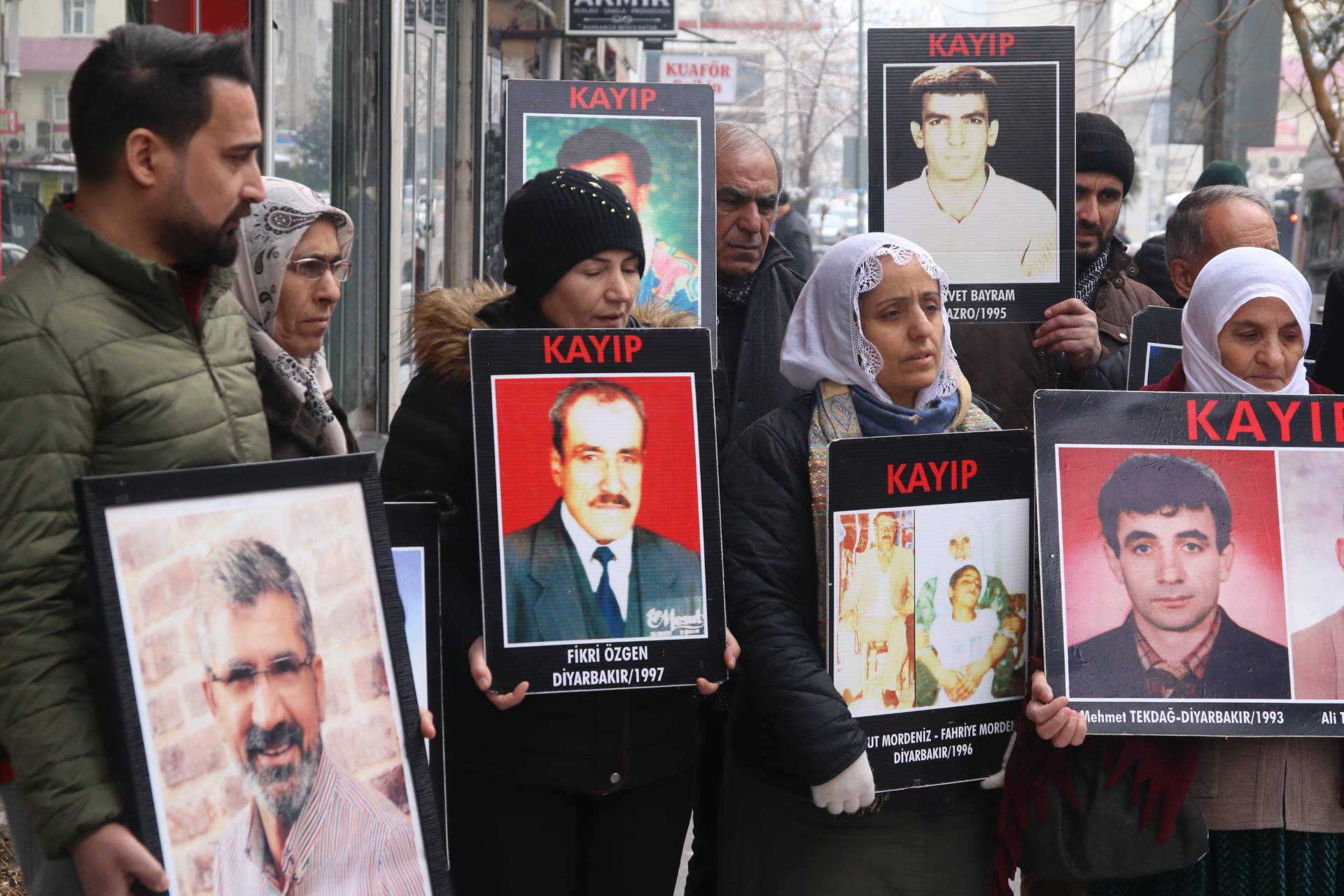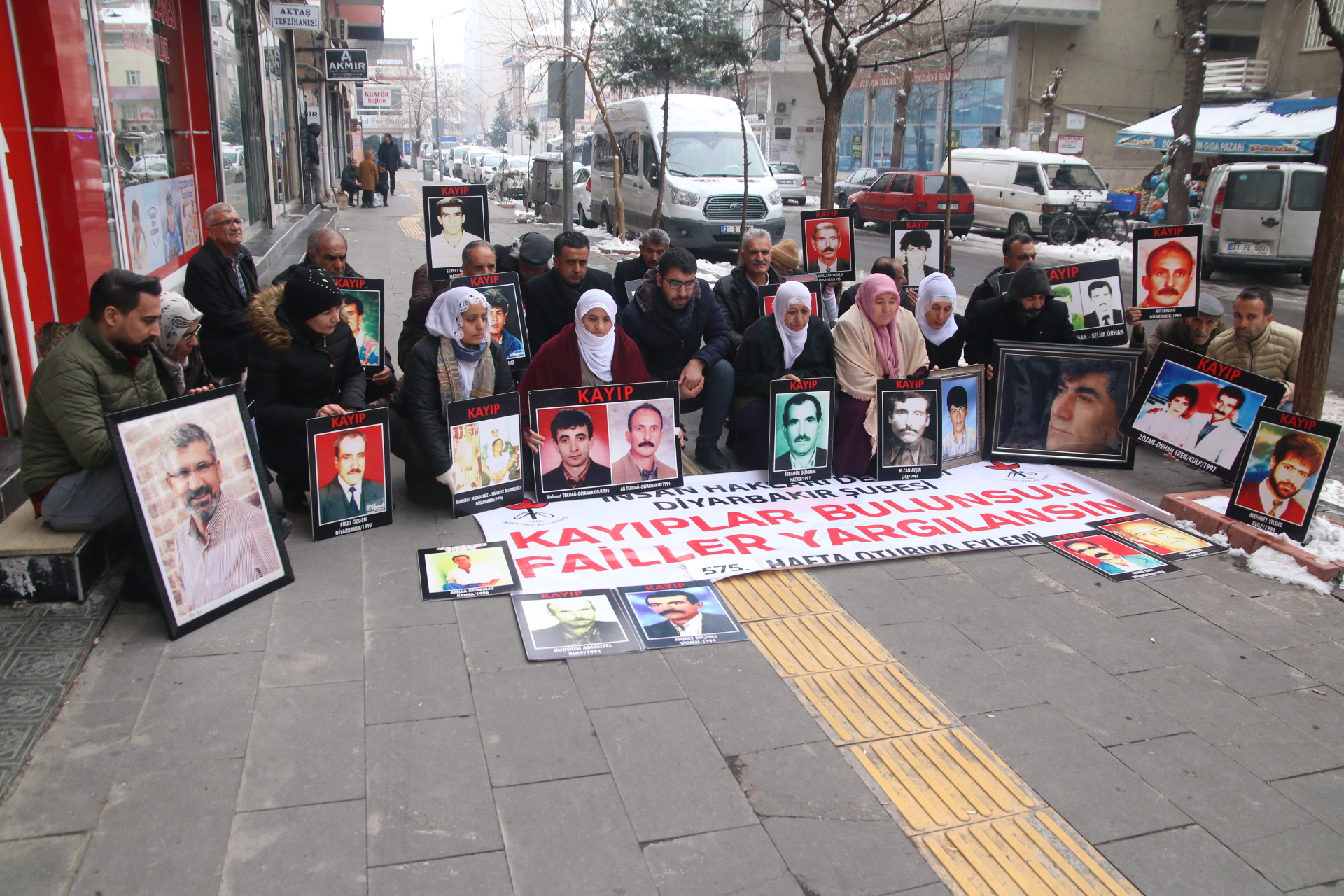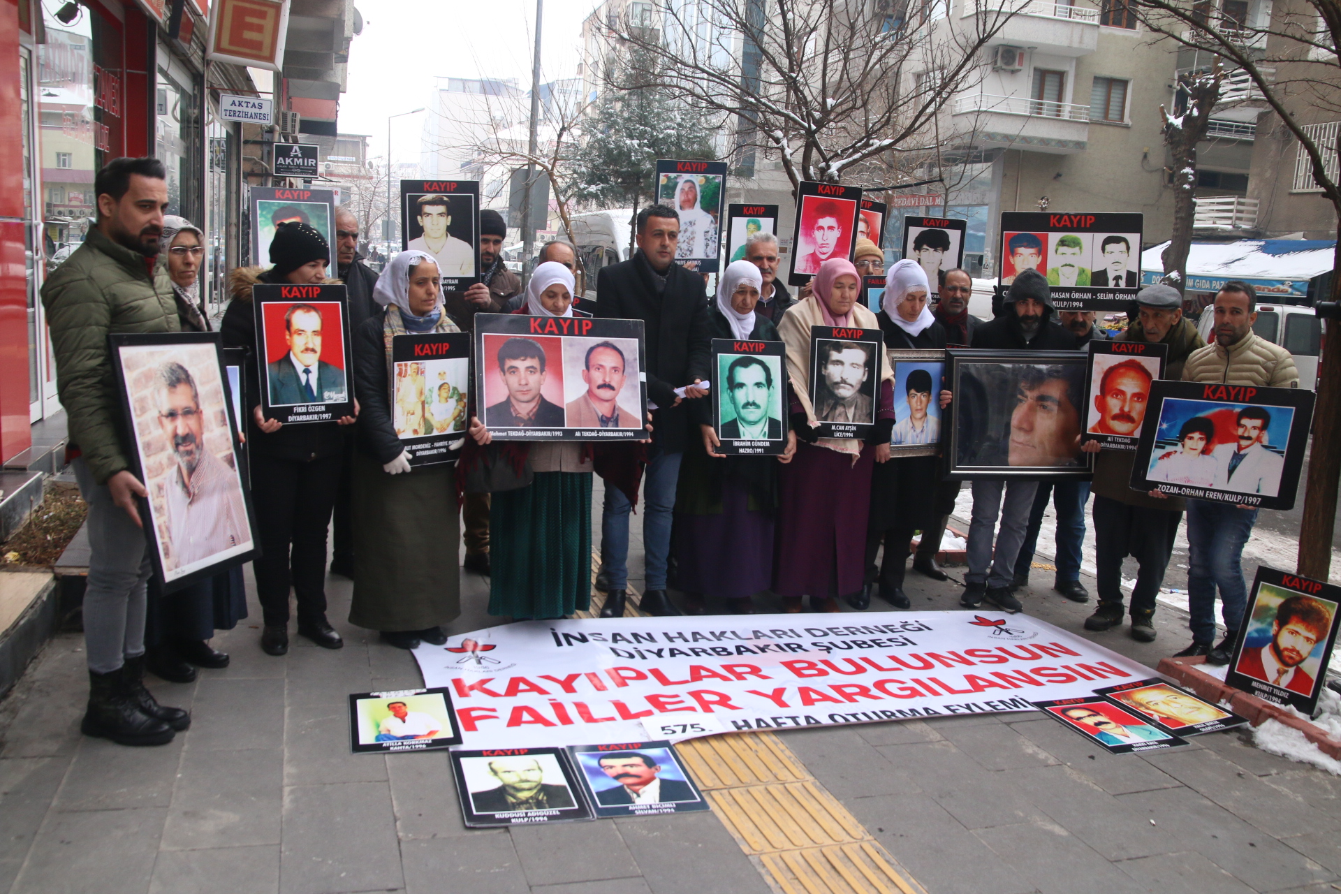 İnsan Hakları Derneği (İHD) Diyarbakır Şubesi ve kayıp yakınları tarafından “Kayıplar bulunsun, failler yargılansın” sloganıyla her hafta düzenlenen oturma eylemlerinin 575’incisi, Valiliğin kayıp eylemlerini 76 haftadır yasaklayan keyfi ve hukuk dışı kararı nedeniyle İHD Diyarbakır Şube binası önünde gerçekleştirildi. Eyleme İHD Diyarbakır Şube yönetici ve üyeleri, kayıp yakınları ve insan hakları aktivistleri katıldı. Eylemde, 1992 yılında Mardin’in Nusaybin ilçesine bağlı Kuşkaya köyünde koruculuk dayatmalarına karşı gerçekleştirilen toplumsal gösteri sırasında, askerlerce açılan ateş sonucu yaşamını yitiren Bedriye Gümüş ve 5 köylünün faillerinin bulunarak cezalandırılması talep edildi.