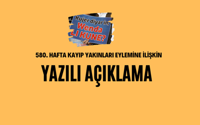 İnsan Hakları Derneği Diyarbakır Şubesi ve Diyarbakır Kayıp Yakınlarının “Kayıplar Bulunsun, Failler Yargılansın” sloganıyla her cumartesi günü düzenledikleri oturma eylemleri 580. Haftaya ulaşıldı. Bu hafta da koronavirüs (kovid-19) salgın hastalık tehditi nedeniyle geçici bir süre ve ikinci bir duyuruya kadar dışarıda düzenlediğimiz kayıp oturma eylemini kitlesel olarak düzenlemeyeceğiz.