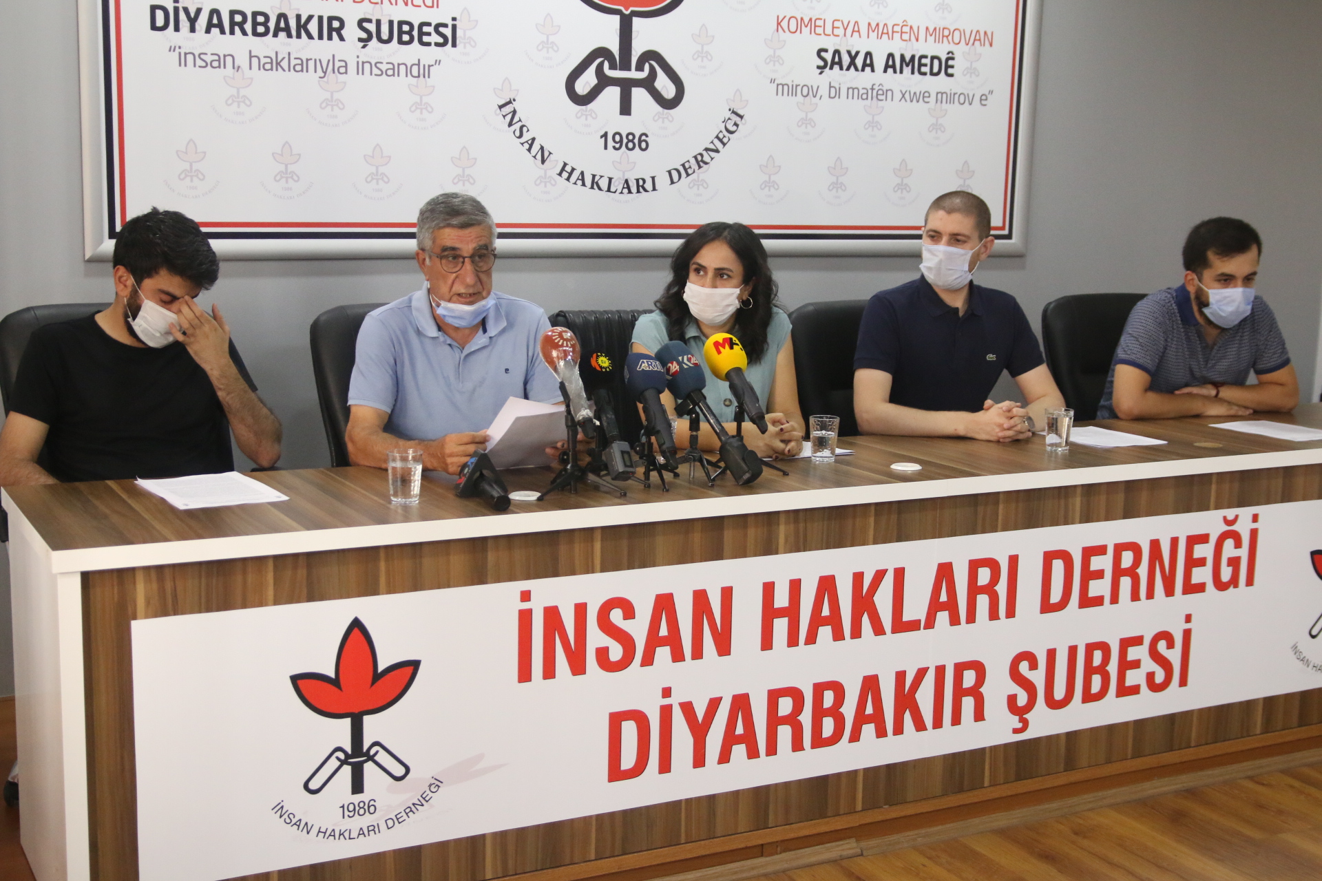 İnsan Hakları Derneği (İHD) Diyarbakır Şubesi tarafından hazırlanan “2020 Yılı İlk 6 Ay Doğu ve Güneydoğu Anadolu Bölgesi İnsan Hakları İhlalleri Raporu” düzenlenen bir basın toplantısı ile kamuoyuna açıklandı. İHD Diyarbakır Şubesi’ binasında düzenlenen basın toplantısına İHD Genel Başkan Yardımcısı Rehşan Bataray Saman, Bölge Temsilcisi Abdusselam İnceören, Diyarbakır Şube Başkanı Abdullah Zeytun ve Diyarbakır Şube yöneticileri Ercan Yılmaz ile Yakup Güven katıldı.