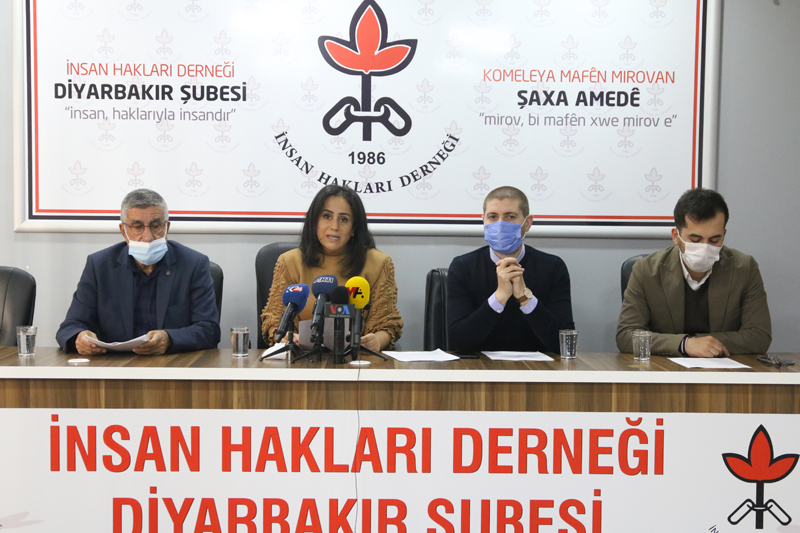 İnsan Hakları Derneği (İHD) Diyarbakır Şubesi tarafından hazırlanan “2020 Yılı Doğu ve Güneydoğu Anadolu Bölgesi İnsan Hakları İhlalleri Raporu” düzenlenen bir basın toplantısı ile kamuoyuna açıklandı. İHD Diyarbakır Şubesi’ binasında düzenlenen basın toplantısına İHD Genel Başkan Yardımcısı Rehşan Bataray Saman, Bölge Temsilcisi Abdusselam İnceören, Diyarbakır Şube Başkanı Abdullah Zeytun ve Diyarbakır Şube yöneticisi Ercan Yılmaz katıldı.
