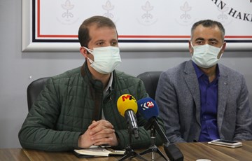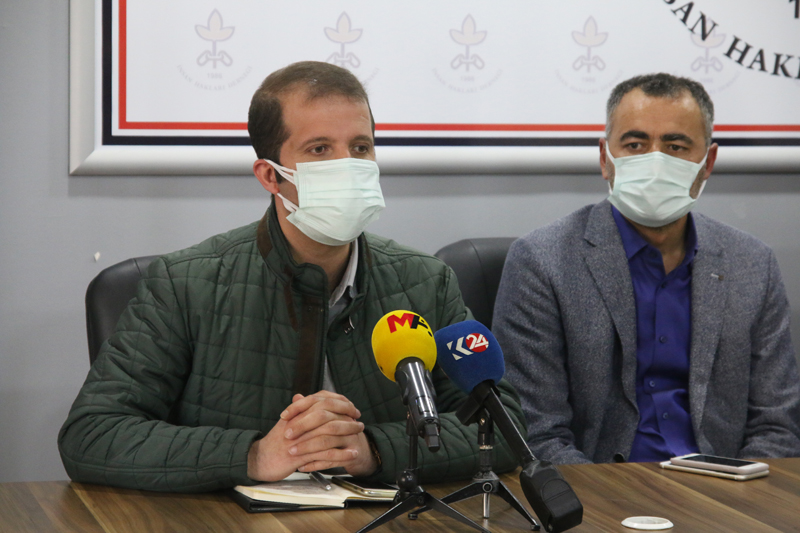 DİYARBAKIR- İHD Eş Genel Başkanı Öztürk Türkdoğan'ın sabah saatlerinde polis tarafından evine düzenlenen baskın sonucunda gözaltına alınmasına ilişkin düzenlenen basın toplantısında, "Barış çalışmalarında yer alan aktif bir insan hakları hukukçusu olan Eş Genel Başkanımız Öztürk Türkdoğan'ın hukuka aykırı gözaltı işlemlerinin sonlandırılarak, derhal serbest bırakılmasını talep ediyoruz" denildi.