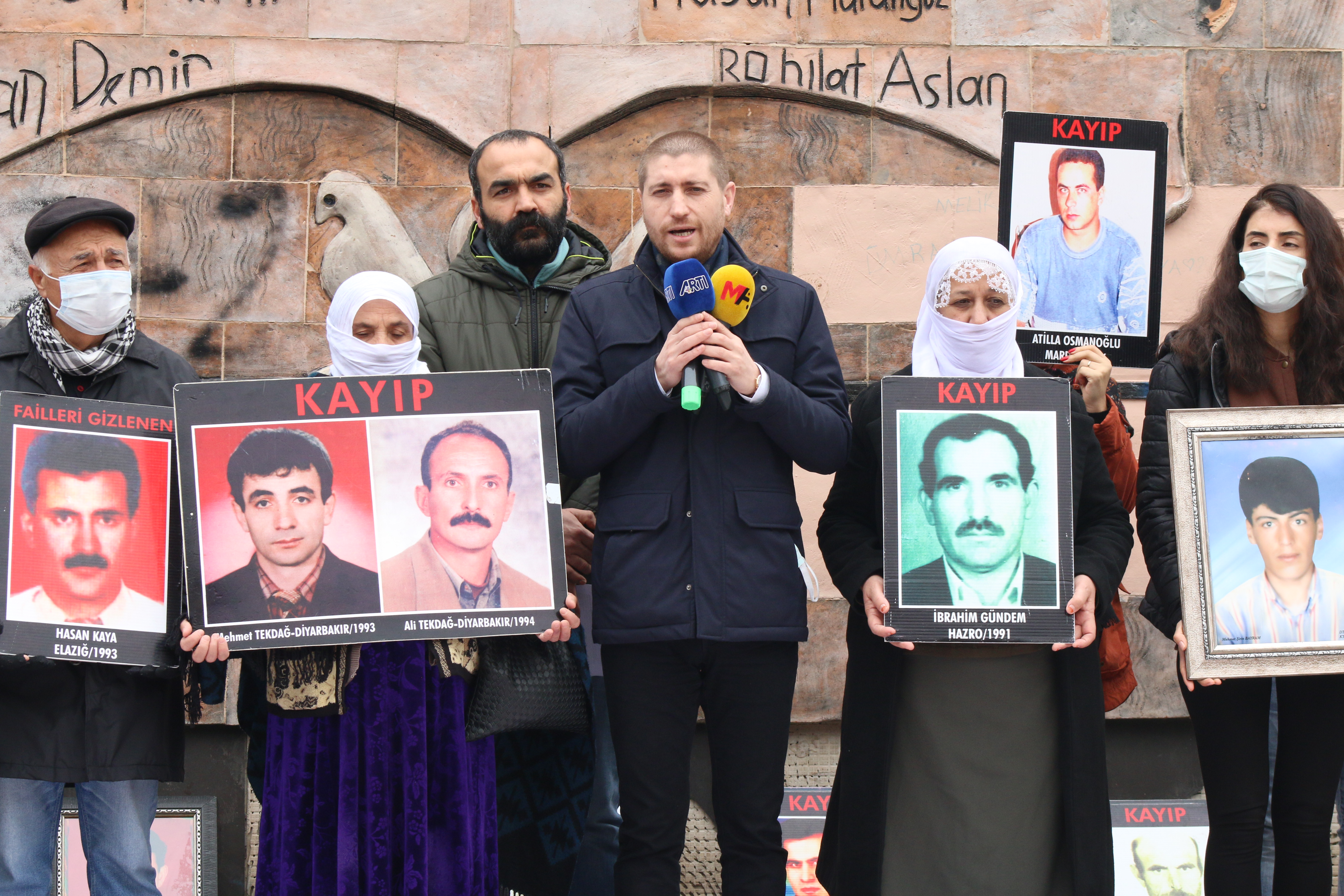 Eylemde konuşan İHD Diyarbakır Şubesi Başkanı Abdullah Zeytun, yıllardır her alanda Barış Anneleri ve kayıp ailelerinin kayıpların bulunmasını, faillerin yargılanmasını talep ettiğini söyledi. Bugüne kadar ailelerin hukuki, idari ve siyasal engellerle karşılaştığını vurgulayan Zeytun, “Hakikat ve adalet taleplerine cevap olunamadı. Ne yazık ki bu tür otoriter-güvenlikçi politikaların süre geldiği hukukun üstünlüğünün esas alınmadığı devletlerde karşılaşılan uygulamalardır. Bugün de bu politikalarla karşı karşıyayız” dedi. Gözaltında kaybettirilen Cemil Kırbayır dosyasında zaman aşımı kararının verilmesine tepki gösteren Zeytun, “1980 Darbesi sürecinde resmi olarak gözaltına alınan, gözaltındayken işkenceyle katledilen ve cansız bedeni kaybettirilen Cemil Kırbayır’ın dosyasında savcı zaman aşımı gerekçesiyle takipsizlik kararı verdi. İnsanlığa karşı işlenmiş suçlar konusu olan bu suçun, zaman aşımıyla kapatılmasının ne evrensel hukukla, ne mevzuatla, ne de vicdanla bağdaşır bir yönü bulmamaktadır. Hukuk devleti iddiasında olan, evrensel hukukun gerekliliklerini yerine getirmekle yükümlü devletin, bu ve benzeri insanlığa karşı işlenmiş suçların zaman aşımı bahanesiyle kapatmasını kabul etmiyoruz. Annelerin yıllardır dirençle sürdürdükleri mücadelelerini benzer yargısal kararlarla görmezden gelebilirler. Ancak annelerin, barış savunucularının, kayıp yakınlarının mücadelesi mahkemelerin yargısal kararlarının üstündedir. Azimleri faillerin yargılanmasını sağlayacaktır. Biz hak savunucuları olarak her zaman ailelerin yanlarında duracağız. Bu nedenle başta insanlığa karşı işlenmiş suçlarda Cemil Kırbayır dosyası olmak üzere, yargısal kararlarla üstü kapanmaya, failleri aklamaya çalışılan bu dosyalar karşısında yargıdan bir kez daha evrensel hukukun gerekliliklerinin yerine getirmesini istiyoruz. Faillerin işlediği bu suça ortak olmamaları gerektiğini ifade ediyoruz. Yargının evrensel hukukun üstünde olamayacağını, yargıçların temel referans noktaları ise evrensel hukuk ve insan hakları ölçüleridir” diye ekledi.