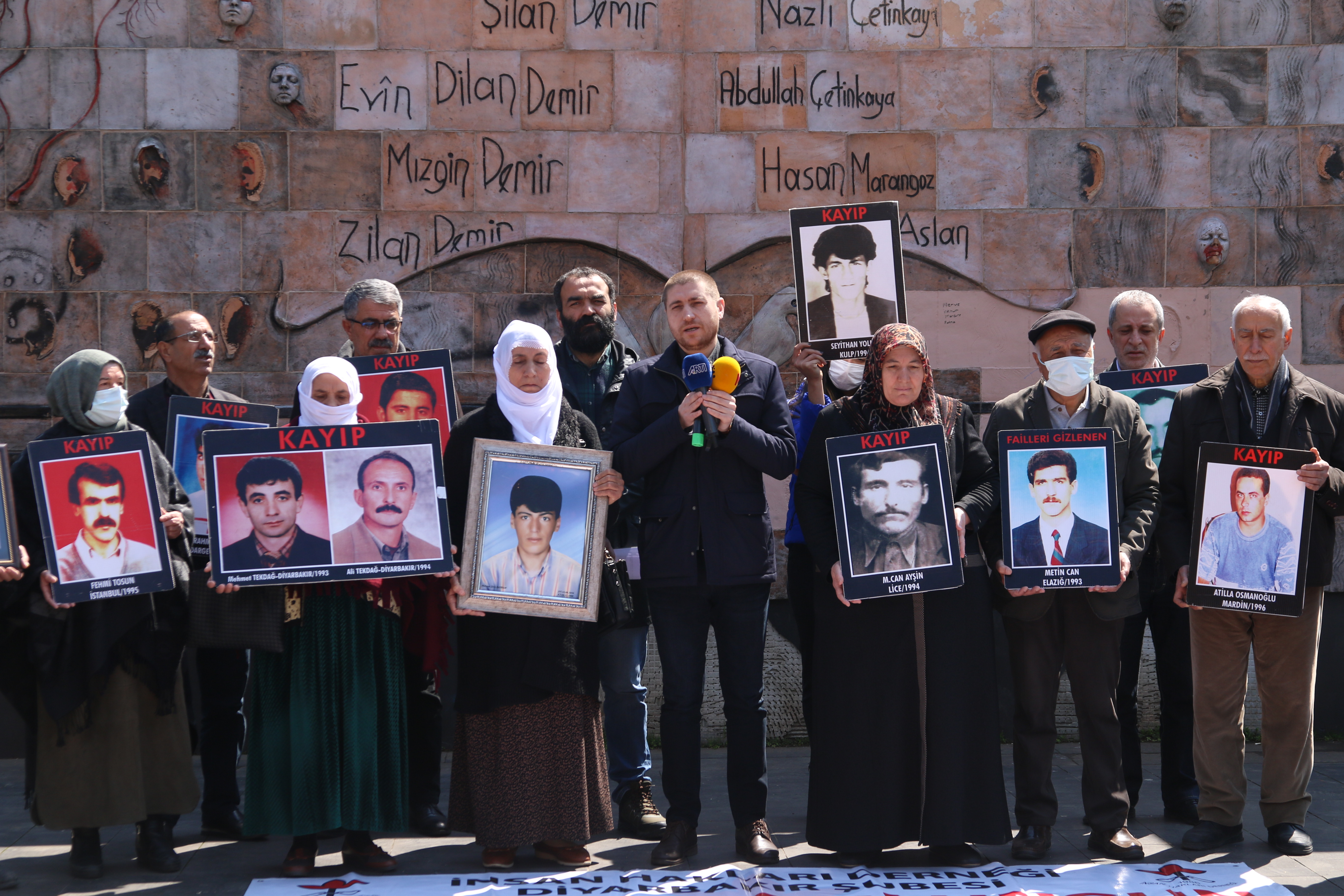 İnsan Hakları Derneği (İHD) Diyarbakır Şubesi ve Kayıp Yakınlarının her hafta düzenlediği “Kayıplar bulunsun, failler yargılansın” oturma eyleminin 685’inci haftası gerçekleştirildi. Eyleme İHD Diyarbakır Şubesi yönetim kurulu üyeleri, hak savunucuları ve kayıp yakınları katıldı. Koşuyolu Parkı Yaşam Hakkı Anıtı önünde yapılan eylemde, kayıpların fotoğrafları taşındı. Kayıp yakınları bu hafta, 1 Ocak 1994’te Şırnak’ın Silopi ilçesinde gözaltında kaybedilen Ali Müldir’in akıbetini sordu.