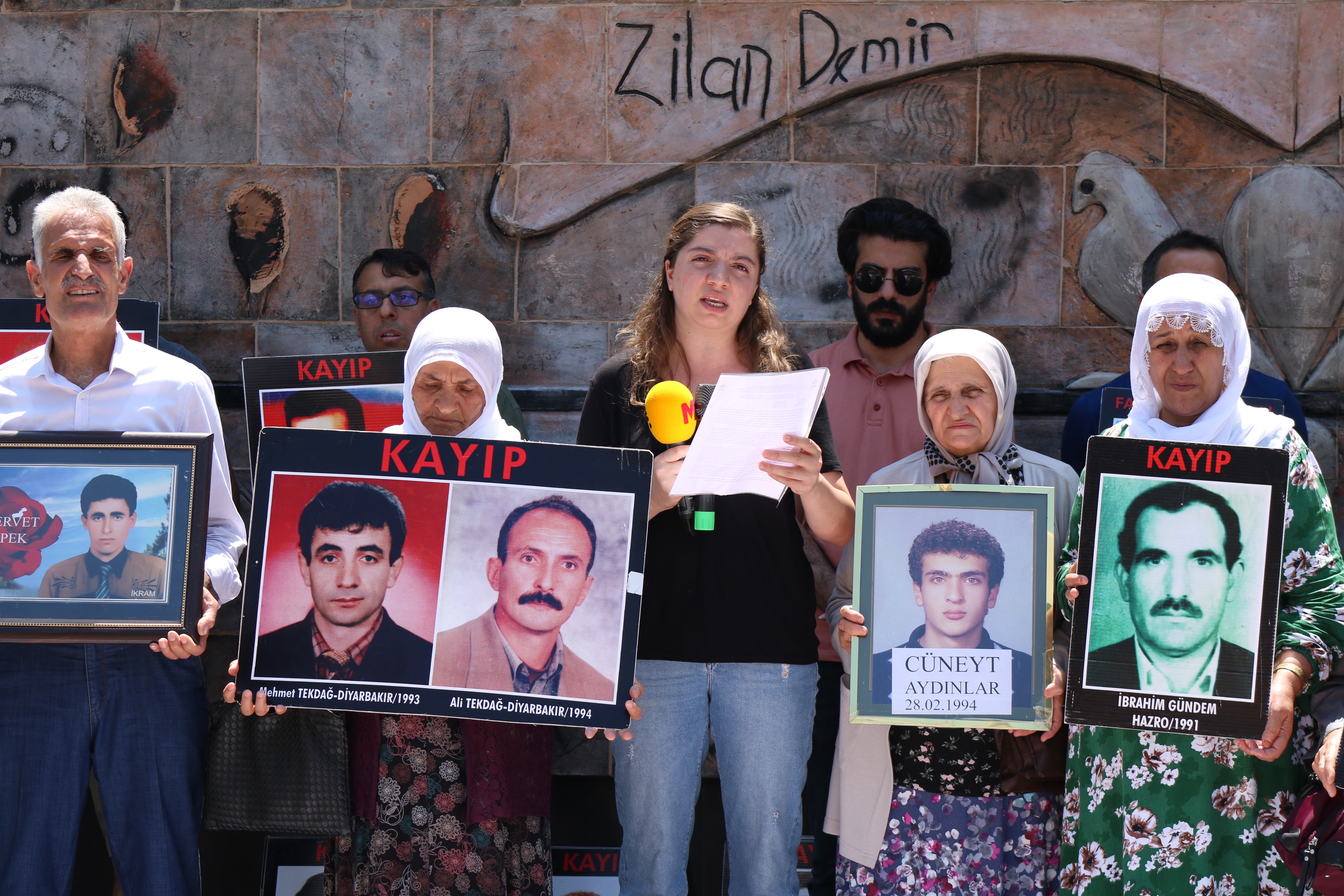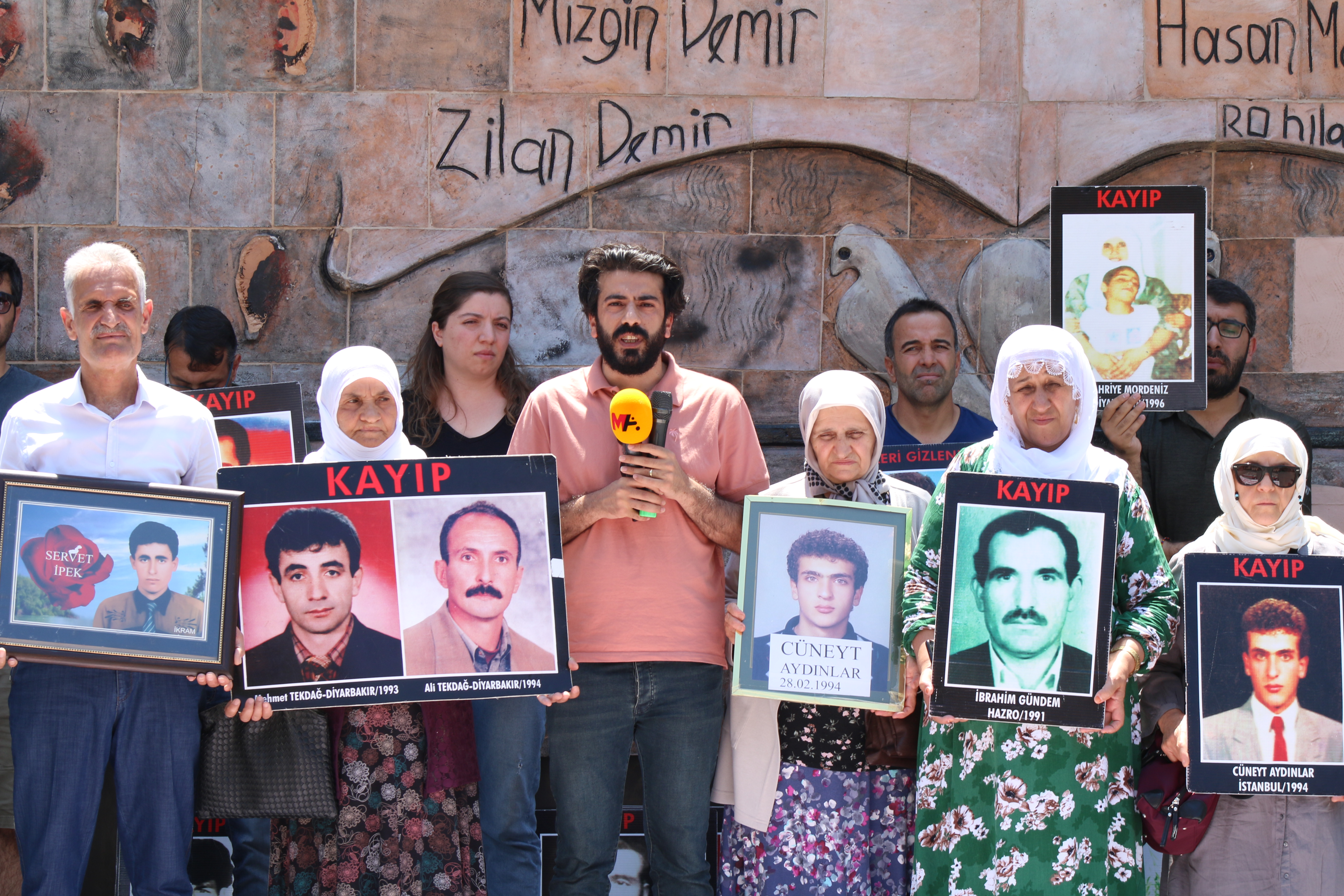 Oturma eylemi öncesi İHD Diyarbakır Şube Sekreteri Yakup Güven, şunları ifade etti: “Özellikle 90’lı yıllarda bölgede binlerce Kürt siyasetçi, sivil toplum temsilcisi, hak savunucusu, çeşitli yöntemlerle gözaltında veya başkaca şekilde kaybedilmiş, kendilerinden bir daha haber alınamamıştır. Ailelerin çeşitli adli ve idari yerlere yaptığı başvurular sonuçsuz kalmıştır. Biz 30 yılı aşkın süredir devam eden hukuksuzluğa, her hafta çocuklarının akıbetini burada devlete, yetkililere soran annelerin ve kayıp yakınlarının, bu haklı taleplerinin yerine getirilmesini talep ediyoruz. Devlet sorumluluk sahibi bir pozisyonla yaklaşmalıdır. Bu mücadeleyi verirken bazı annelerimiz, çocuklarının kemiklerine ulaşmadan hayatlarını kaybettiler. Bazı annelerimiz gözaltına alındılar, sokaklarda sürüklendiler, darp edildiler. Biz bu hukuk dışı yöntemin son bulmasını, annelerimizin sesine kulak verilmesini, kayıpların akıbetinin ortaya çıkarılmasını, faillerin tespit edilerek, etkin bir soruşturmayla yargılanmasını talep ediyoruz. 90’lardan beri kaybedilme şeklinde kendini gösteren bu politika, devletin bölgedeki Kürt halkına yönelttiği bu politika, son yıllarda çeşitli şekillerde devam etmektedir. Kürt diline olan tahammülsüzlük, Kürtçenin kamusal alanda kullanılmasının baskıcı yöntemlerle, hukuksuz idari kararlarla engellenmesi, Kürtlerin temel yaşam alanlarında kendi dillerini kullanmaktan yasaklı duruma gelmeleri, içinde bulunulan durumun başka yönlü özetidir. Gün yoktur ki, Kürt siyasetçilerine, Kürt sivil toplum kurumlarına, Kürt hak savunucularına, Kürt basın emekçilerine baskı, gözaltı, yasaklama veya soruşturmalar yürütülmemiş olsun. Yine bu hafta çok sayıda basın emekçisinin gözaltına alındığı haberiyle uyandık. Gözaltına alınan basın emekçilerinin hangi kararla ve gerekçeyle gözaltına alındığına dair, ‘kısıtlılık kararı’ nedeniyle bilgi sahibi değiliz. Basın emekçileri hala gözaltında. Son 30 yılla devam eden bu sürecin sivil toplum kurumlarına, basın çalışanlarına yönelen bu adımını da hukuki bulmuyoruz. Devletin özellikle Kürt meselesine karşı daha sorumlu, barışçıl, demokratik yöntemlerle yaklaşmasını bekliyoruz.”