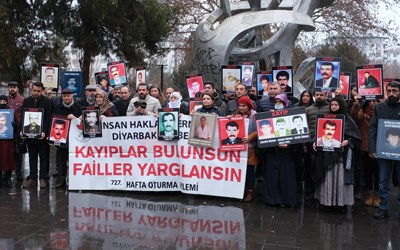 İnsan Hakları Derneği (İHD) Diyarbakır Şubesi ve Kayıp Yakınlarının, “Kayıplar bulunsun failler yargılansın” eyleminin 727’nci haftası Koşuyolu Parkı Yaşam Hakkı Anıtı önünde gerçekleştirildi. Kayıp yakınları, hak savunucuları ve sivil toplum örgütü temsilcilerinin katıldığı eylemde, kayıpların fotoğrafları taşındı. Bu hafta, 6 Mart 1994 tarihinde Şırnak’ın Cizre ilçesinde kaçırılarak öldürülen Süleyman Gasyak, Ömer Candoruk, Abdulaziz Gasyak (13) ve Yahya Akman’ın (17) failleri soruldu.