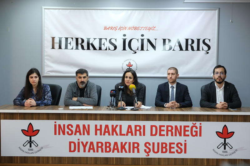 Şube binasında  düzenlenen toplantıya İHD Genel Başkan Yardımcısı Rehşan Bataray Saman, İHD Doğu ve Güneydoğu Anadolu Bölge Temsilcisi Mehmet Tahir Saçaklı, İHD Diyarbakır Şube Başkanı Abdullah Zeytun, İHD MYK ve Diyarbakır Şube Yönetim Kurulu Üyesi Ercan Yılmaz ve İHD Diyarbakır Şube Yönetim Kurulu Üyesi Jiyan Ormanlı katıldı. Basın toplantısında açıklamada bulunan Bataray Saman, "Bölgemizde uzun yıllardır “Kürt Meselesi” odaklı sürdürülen otoriter devlet-hükümet politikaları sonucunda 2022 yılında da fiili OHAL rejimi uygulamaları ile hak ihlalleri artış göstermeye devam etmiştir. Şiddete dayalı bu politikalar ile ırkçı yaklaşımlar, ayrımcı uygulamalar ve cinsiyetçi yaklaşımlar derinleşmiş; bölgede özellikle kolluk görevlilerinin faili olduğu birçok yaşam hakkı ihlali gerçekleşmiştir. Kürt meselesi ile birlikte süre gelen çatışma ortamı, Türkiye’nin iç ve dış politikadaki istikrarsızlığını devam ettirmiştir." dedi.