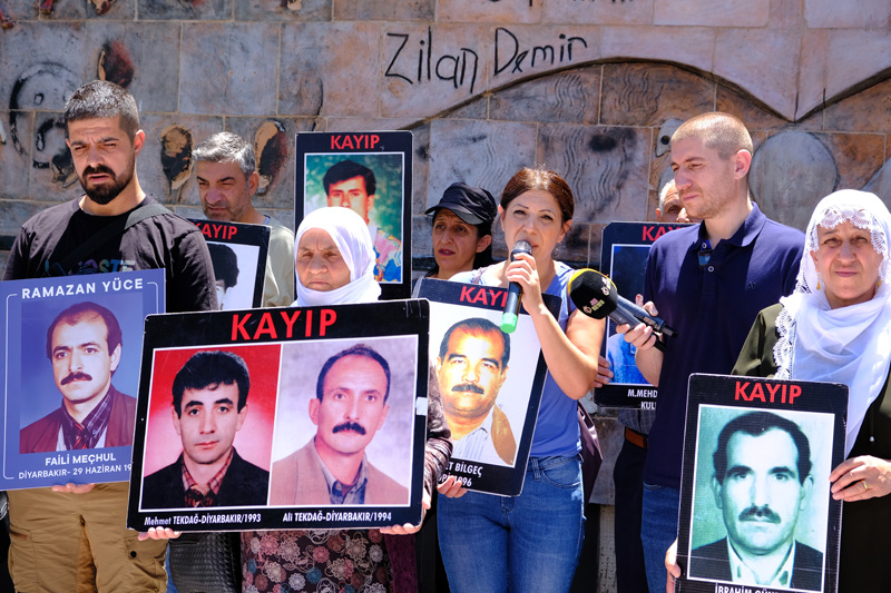 Eylemde konuşan İHD Diyarbakır Şubesi Başkanı Abdullah Zeytun şunları söyledi: “Devletin 90’lı yıllardaki ve sonrasındaki ağır insan hakları ihlallerine karşı adalet ve hakikat mücadelemizin 750’inci haftasındayız. Devletin 750 hafta boyunca sürdürdüğü sessizliğe, suskunluğa karşı da mücadele ediyoruz. Demokratik ilkelerden uzaklaşan,  uluslararası hukuk standartlarını da çiğneyerek karşımızda duran bir siyasi iktidar var.