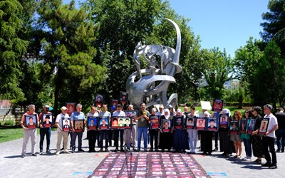 İnsan Hakları Derneği (İHD) Diyarbakır Şubesi ve kayıp yakınları, “Kayıplar bulunsun failler yargılansın” eyleminin 804. haftasını, Koşuyolu Parkı Yaşam Hakkı Anıtı önünde gerçekleştirdi. Eyleme kayıp yakınları, Vedat Aydın’ın Eşi Şükran Aydın, kardeşi Veysi Aydın, Sur Belediyesi Eşbaşkanı Adnan Örhan, siyasi parti ve sivil toplum örgütü temsilcileri ile hak savunucuları katıldı. Eylemde, gözaltında zorla kaybedilenlerin ve faili meçhul saldırı sonucu katledilenlerin fotoğrafları taşındı. Bu hafta, Diyarbakır'da 5 Temmuz 1991 tarihinde gözaltında kaybedilen İnsan Hakları Savunucusu – Siyasetçi Vedat Aydın’ın failleri soruldu.