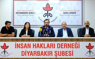 Şubemiz, çözüm sürecinin bittiği 24 Temmuz 2015 ile 24 Temmuz 2024 tarihleri arası Doğu Ve Güneydoğu Anadolu Bölgesi “TOPLANTI VE GÖSTERİ YÜRÜYÜŞÜ İLE KİŞİ ÖZGÜRLÜĞÜ VE GÜVENLİĞİ HAKKINA YÖNELİK İHLAL RAPORU”nu açıkladı. Şube binamızda gerçekleşen basın toplantısına İHD Onursal Genel Başkanı Akın Birdal, İHD Diyarbakır Şubesi Başkanı Ercan Yılmaz, Başkan Yardımcısı Suzan Mehmetoğlu, Şube Sekreteri Ömer Saman, Yürütme Kurulu Üyesi Yakup Güven katıldı.
