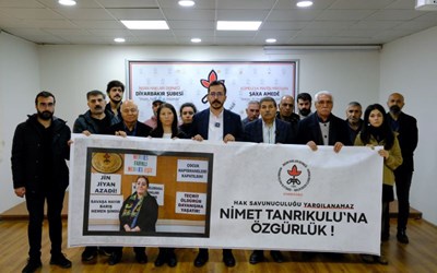 Açıklamada konuşan İHD Diyarbakır Şubesi Başkanı Ercan Yılmaz, şunları söyledi: “Nimet Tanrıkulu, 26 Kasım günü evine yapılan polis operasyonuyla gözaltına alındı. İçişleri Bakanlığının yapmış olduğu açıklamaya göre; Diyarbakır, Eskişehir ve Ankara’da yürütülen soruşturmalar kapsamında 231 kişi gözaltına alındı. Gözaltına alınan insanların profiline baktığımızda birçoğu gazeteci, insan hakları savunucusu ve sendikal faaliyet yürüten ve kadın aktivisti kişilerden oluşmaktadır. Türkiye’de 2015’ten bu yana tekrardan başlayan çatışmalı süreç, otoriter rejim bu tarz sorunları yoğun olarak yaşamamıza neden oldu. Bunun son örneği olarak gerçekleştirilen operasyonu kabul etmiyoruz. Nimet Tanrıkulu hayatı boyunca insan hakları aktivizminde tanınan, bu konuda mücadele yürüten fenimist bir arkadaşımız. Yapmış olduğu çalışmaların tamamı, insan hakları kültürünün oluşması ve gelişmesine katkı sunan çalışmalardır. Kendisinin örgüt üyeliğiyle ilişkilendirilmesinin, yönlendirilmiş tanık beyanlarıyla tutuklanmasını kabul etmiyoruz. Türkiye’nin, Birleşmiş Milletler İnsan Hakları Savunucuları Bildirgesine uygun davranarak, Nimet Tanrıkulu’nun tutuklanması kararından vazgeçmeye çağırıyoruz.”